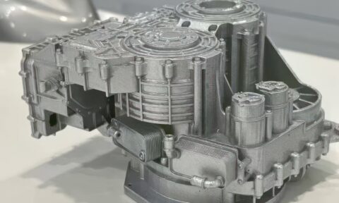 SLA 3D Printed and Silver-Finished Automotive Transmission Housing Model