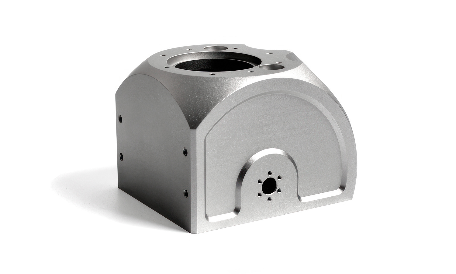 This part looks like a precision aluminum housing for a compact gearbox or actuator assembly. The design is a good example of how modern mechanical products balance stiffness, weight, and manufacturability in one structural component.