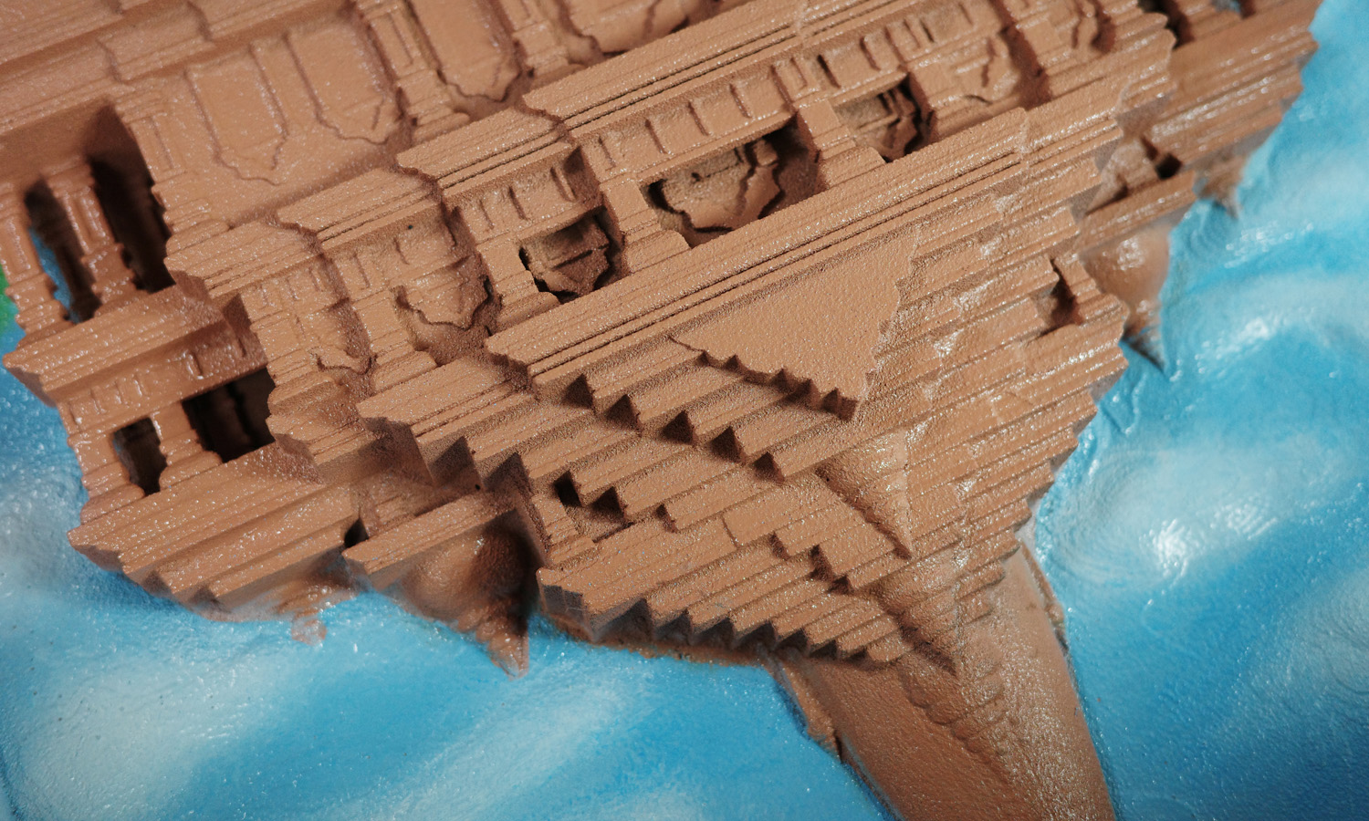 - Step 1: The client’s 3D model of the temple relief was prepared and optimized for ColorJet printing.