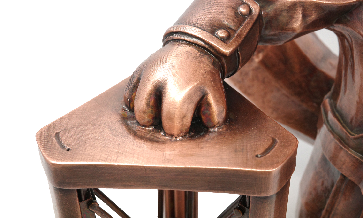 Once plated, the surface underwent an aging treatment to introduce tonal variation and subtle oxidation. This step softened the uniformity of the copper and gave the statue a more sculptural, time-worn appearance. In hand, the surface feels cool and metallic, closely resembling a traditional copper sculpture. Despite this tactile realism, the piece remains significantly lighter than a solid metal statue, making it easier to handle, ship, and display.