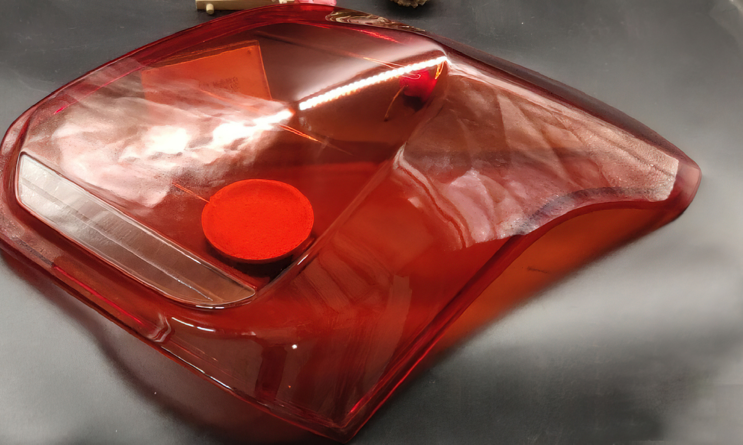 - Step 4: Polishing and TintingThe clear resin prototypes were gradually sanded and polished to restore optical clarity. Then, they were dyed in translucent red and other tones to simulate real automotive lens colors. A protective acrylic coating was applied for gloss and durability.
