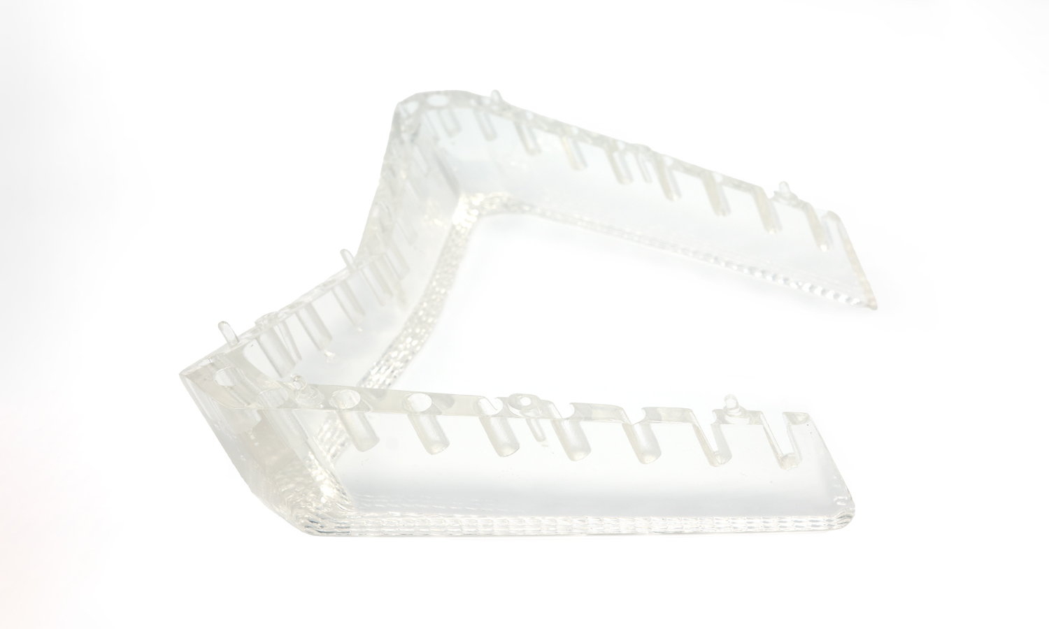 From an optical perspective, the part acted as both a light diffuser and guide. Its clear material allowed light to travel smoothly along the curved profile, while the internal texture and thickness transitions helped soften hotspots and maintain uniform brightness across the visible surface. The transparency also made it easier to inspect internal fit and LED placement during prototyping, reducing iteration time.