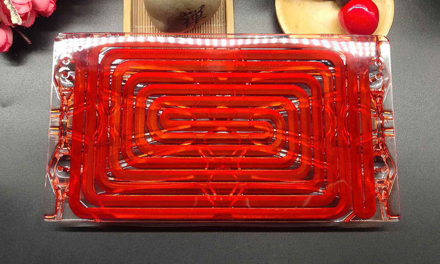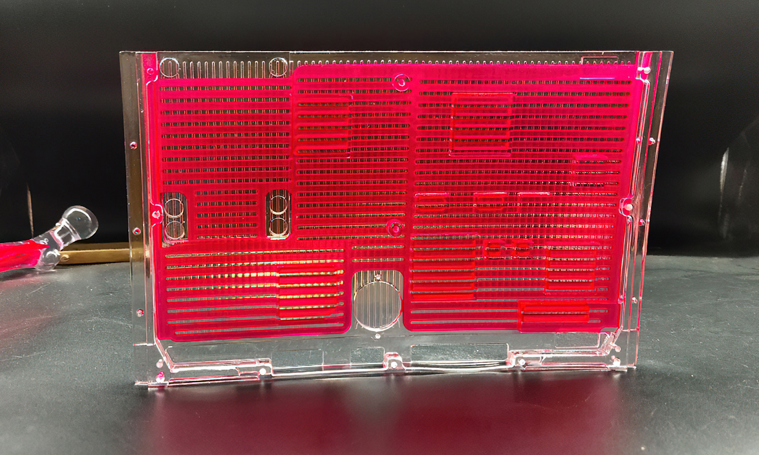• Step 4: The internal channels were selectively dyed using red and blue transparent pigments to emphasize different flow paths and enhance visual contrast.