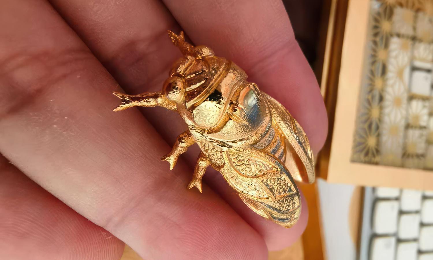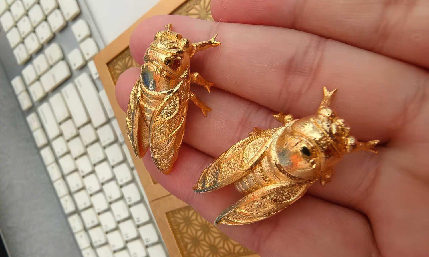 Whether as a unique desktop centerpiece, a bold fashion accessory, or a collector’s item, these golden cicadas prove that 3D printing is the new frontier of luxury decor.