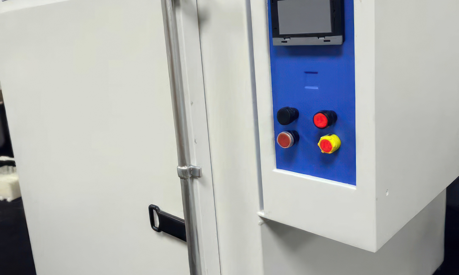 • Ergonomic Layout: The side-mounted control box and heavy-duty vertical latch are positioned for maximum ease of use, allowing engineers to evaluate the human-machine interface (HMI) before moving into full-scale production.