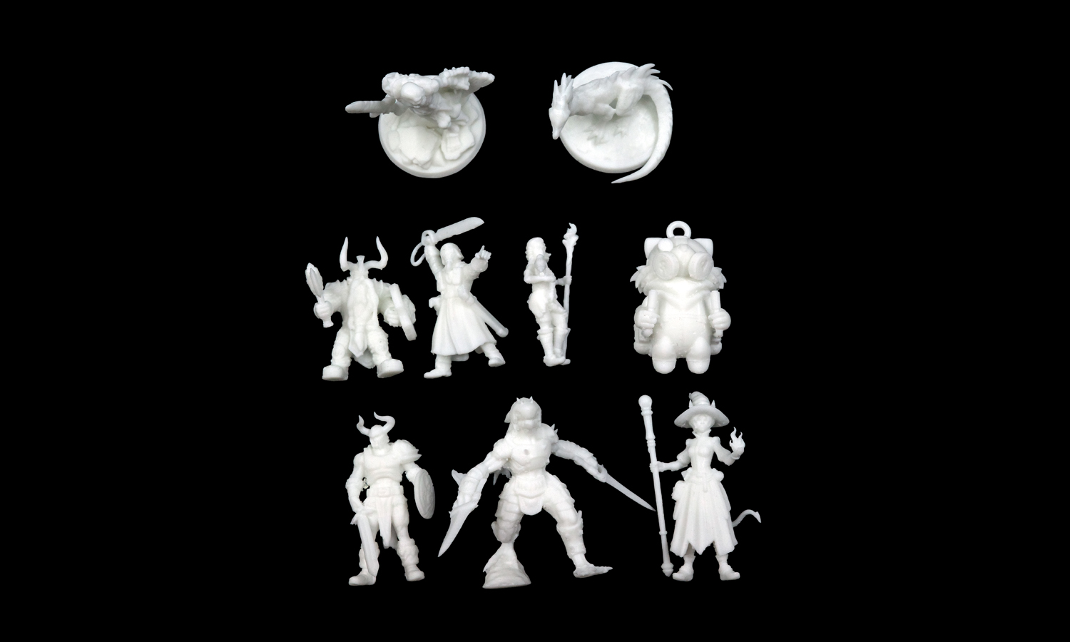 - Step 1: Design Selection. Digital models for the diverse range of heroes, including the horned warriors and the dragon, were selected to showcase high-resolution capabilities.