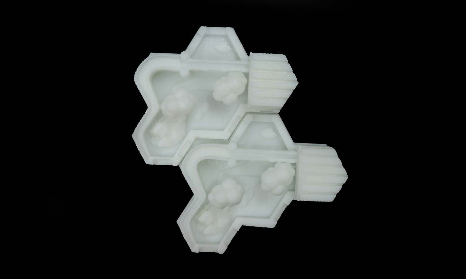 This project features a set of miniature terrain tiles and character heads designed for a board game, showcasing both full-color WJP printing and SLA resin printing. The full-color versions were produced to visualize the game’s world vividly, while SLA versions provided a cost-effective alternative for prototyping and painting.