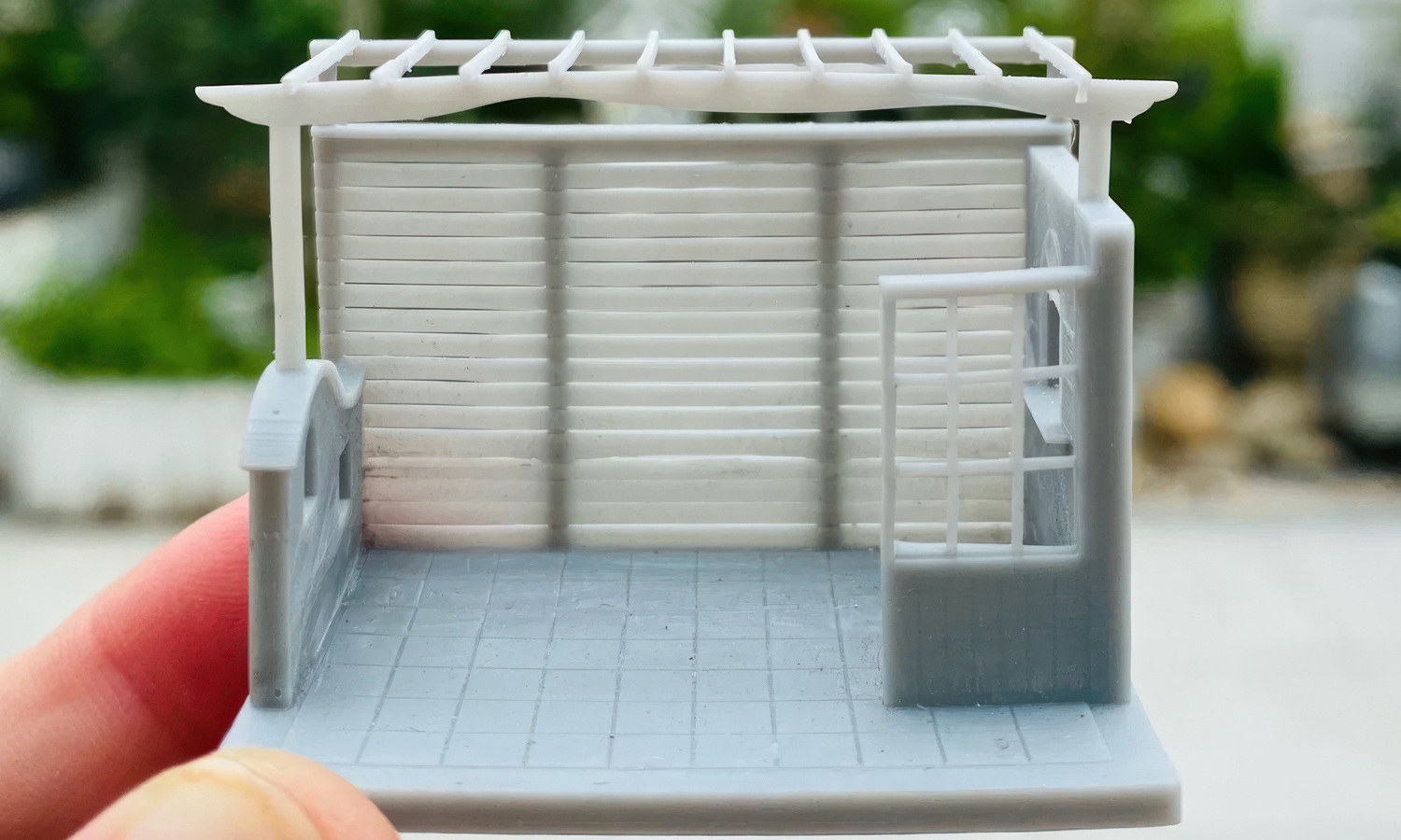 After printing, the model was carefully cleaned, assembled, and hand-finished with layered acrylic paints. The walls were textured to mimic stucco plaster, the shutters and door painted in light turquoise, and the floor tiles coated in terracotta tones to bring out a realistic aged feel. The final result bridges digital design and handcrafted detail, showing how 3D printing empowers creators to bring architectural dreams to life on a small scale.