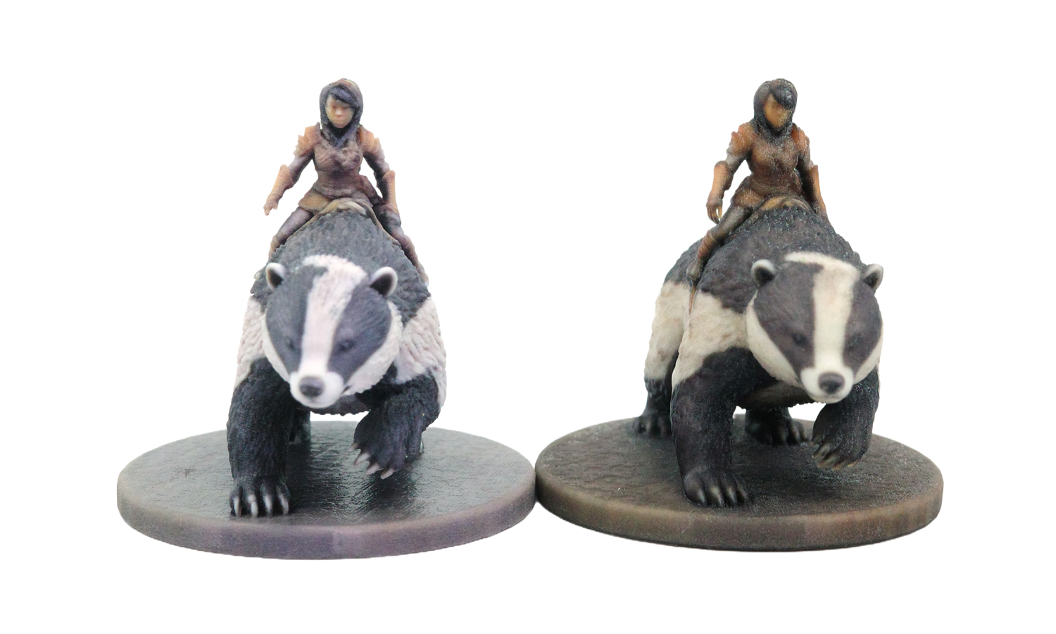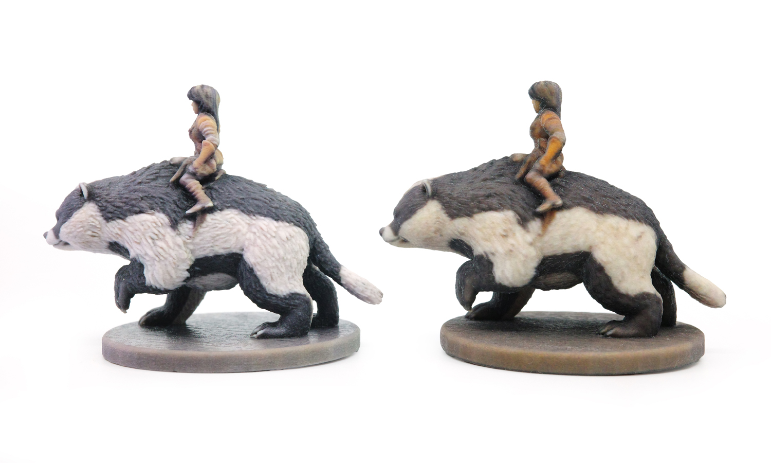 For this project, we produced the same “Rider on Badger” miniature using two different full-color resin printing technologies: