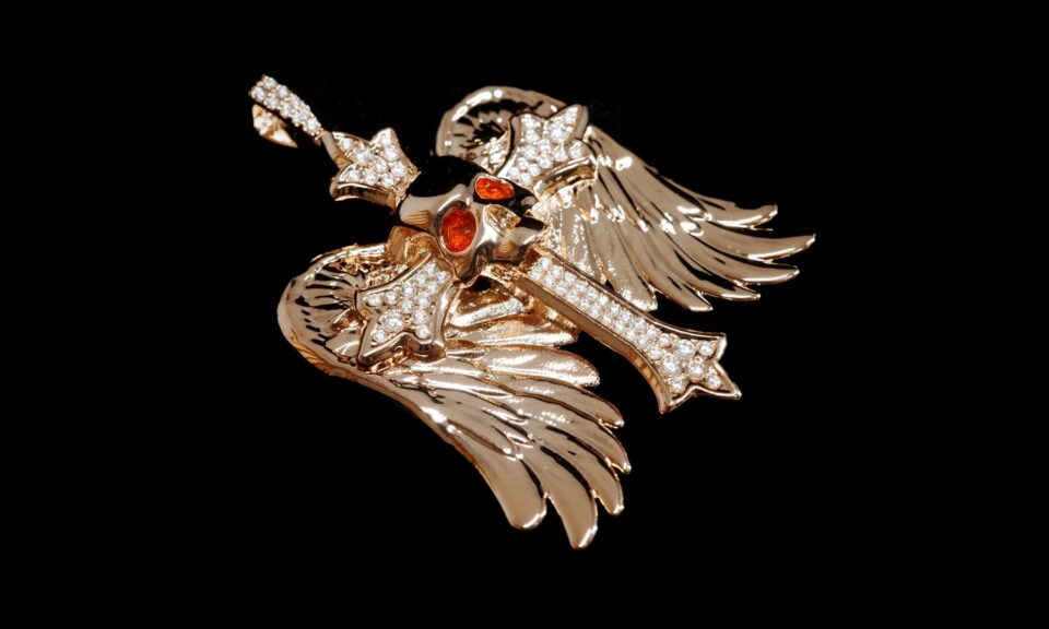 Rose Gold Angel of Death Necklace Pendant Cast from 3D Printed Pattern